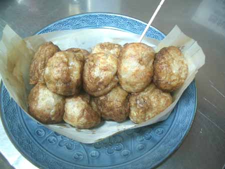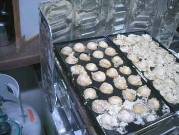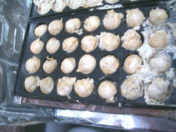 | 2回やって2回とも失敗! 3回目に市販の「たこ焼き用の粉」を使ってみると どうにか丸まった。 この違いはナンだ!? |