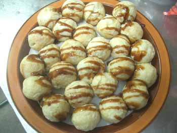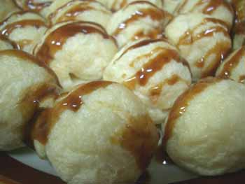 | 昨日の失敗をモトに、 今回は最初から、市販の「たこ焼き用の粉」を使用。 分量は同じ。 まずは「丸める練習」に専念することに、、、 |
