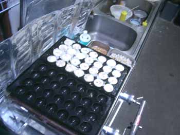 | 現時点での完成型です。 13個で300円というとこでしょうか?^^ やはり、昔の思い出のタコ焼が木舟に入っていたので この形にしたいですネ。 |