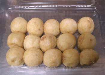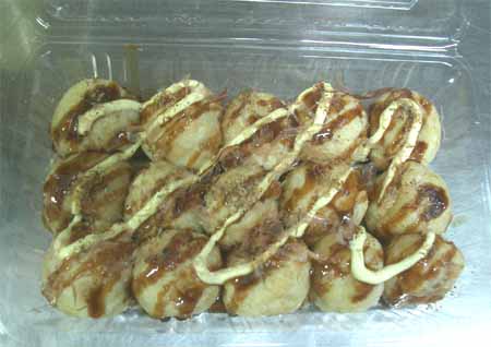 | 試しにパックに直接入れてみましたら、15個入りました。 これで300円だったら、ちょっとお得な感じでしょうか? でも、この入れ物と入れ方だったら、 どこのタコ焼か一目でわかりませんよネ。^^ 「タコの代わりに丸天を使う」という変則技のモノですから やはり見た目も特徴が欲しいと思います。 |