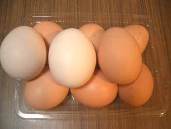| 鶏の種類の違いで たまごの殻の色が白い=さくら、赤い=もみじ、 の2種類があるそうです。 |