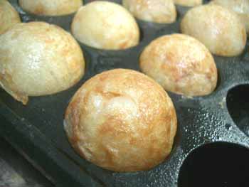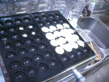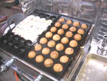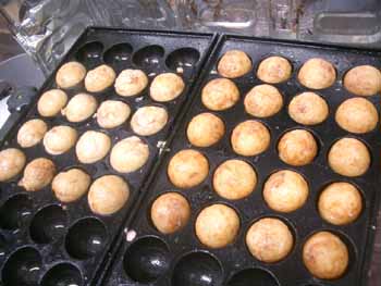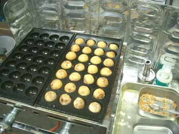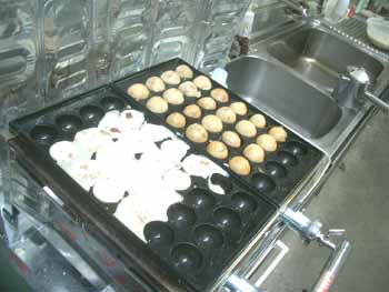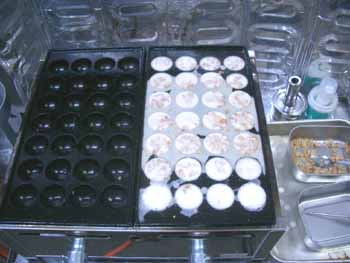 | 今回は、一面全体で焼くのではなく 2列ずつぐらいを、時間差で焼く練習をしてみました。 問題は火加減! 火力が弱すぎると、外側の皮がパリッとできないし、 強すぎると、中身が硬くなる!(^^ゞ |
