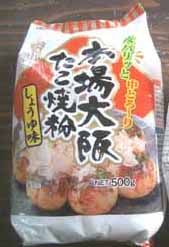| 今日試す市販のタコ焼粉は、、、 日本製粉「本場大阪たこ焼粉・しょうゆ味」 若干、丸まりやすい感じがするのと、 少し柔らかいカナ、という感じでした。 |