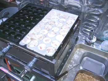 | 余談ですが、 中に砕いて入れる「イカ天」を、 今まで使っていた「スグル食品・イカの姿あげ」ではなく 「オタフク・イカ天ハード」を使ってみましたら、 焼いているときの香りがぜんぜん違うのです。 オタフクのイカ天でいこうかと思います。 |