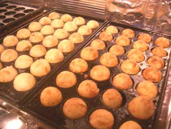 | いきなりガンガン売れるわけもないので、(^^ゞ 一台を焼き専用の台とし、 他の台を種火状態で仕上げ&保温用にして、 常に焼けている状態になるように工夫してみました。 |